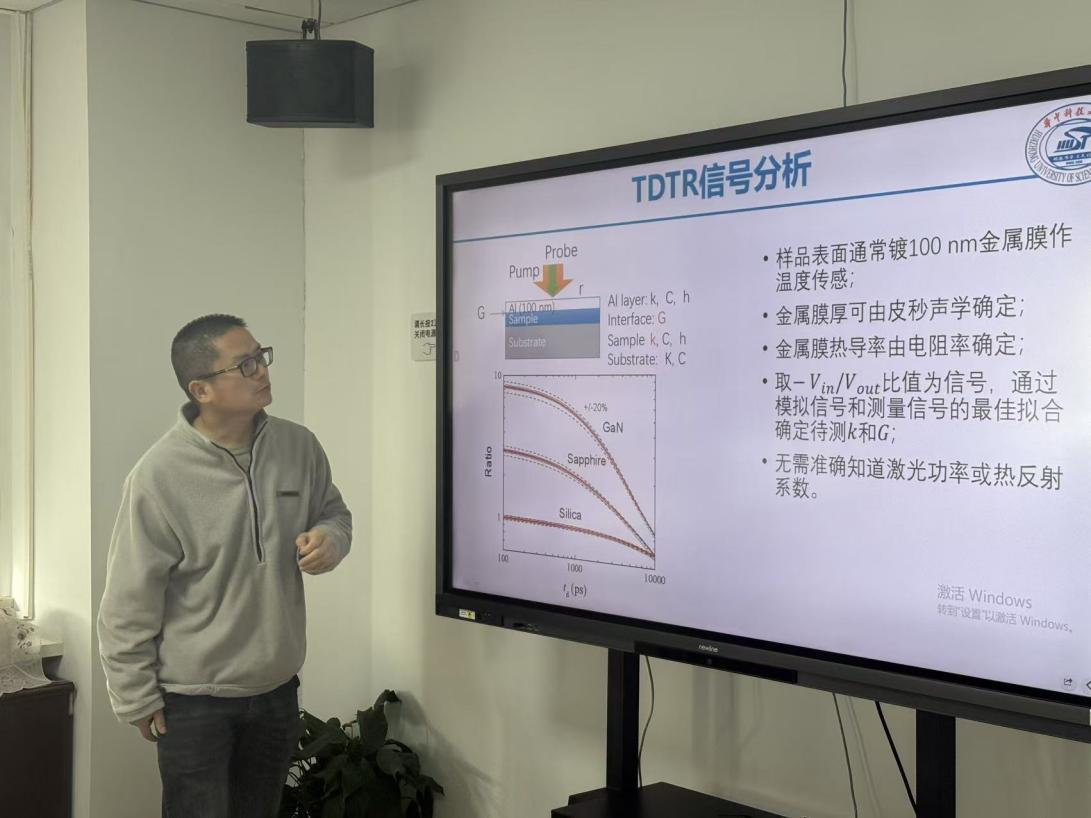 随着5G、人工智能、高性能计算等技术的快速发展,微电子器件集成度不断提升,热管理问题日益凸显。如何准确、高效地测量微纳尺度材料的热导率、比热容及界面热阻,成为行业面临的关键挑战。江普庆教授长期致力于热反射测量技术的研究与创新,在此次研讨会上系统介绍了从瞬态热反射(TTR)、时域热反射(TDTR)、频域热反射(FDTR)到最新一代方脉冲热源法(SPS) 的技术演进路径。