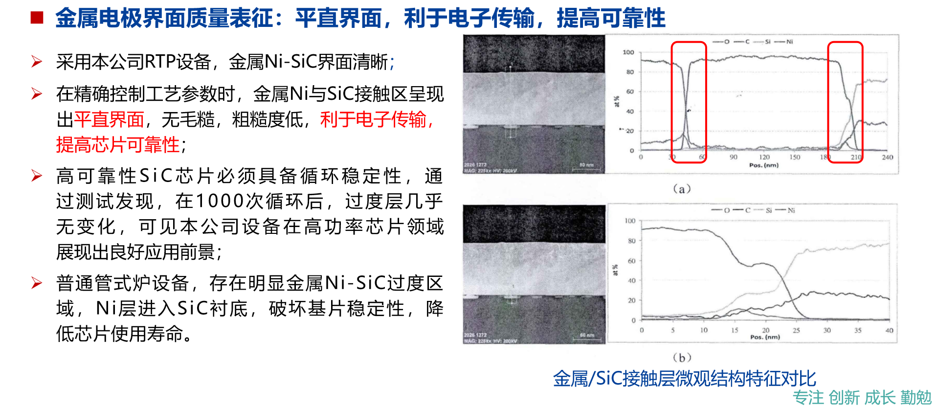 - 实现平直界面:RTP能精确控制热扩散深度,避免金属过度渗入SiC衬底,形成清晰、粗糙度低的金属-SiC界面,有利于电子传输。